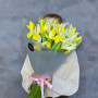 На фото букет из 33 желтых ирисов. В составе: ирис 33 шт, дизайнерская упаковка 2 шт, атласная лента 2 шт, . Все цветы свежие и ароматные, букет красиво оформлен и отлично подходит для подарка. Доступна доставка цветов или самовывоз.