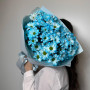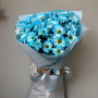 На фото букет голубых ромашек. В составе: хризантема кустовая 5 шт, крафт-бумага 1 шт, атласная лента 1 шт, . Все цветы свежие и ароматные, букет красиво оформлен и отлично подходит для подарка. Доступна доставка цветов или самовывоз.