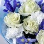 Букет из белых гвоздик, синих ирисов и белых роз в Верхней Салде