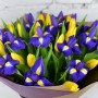 Букет из синих ирисов и желтых тюльпанов в Верхней Салде