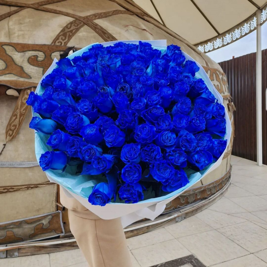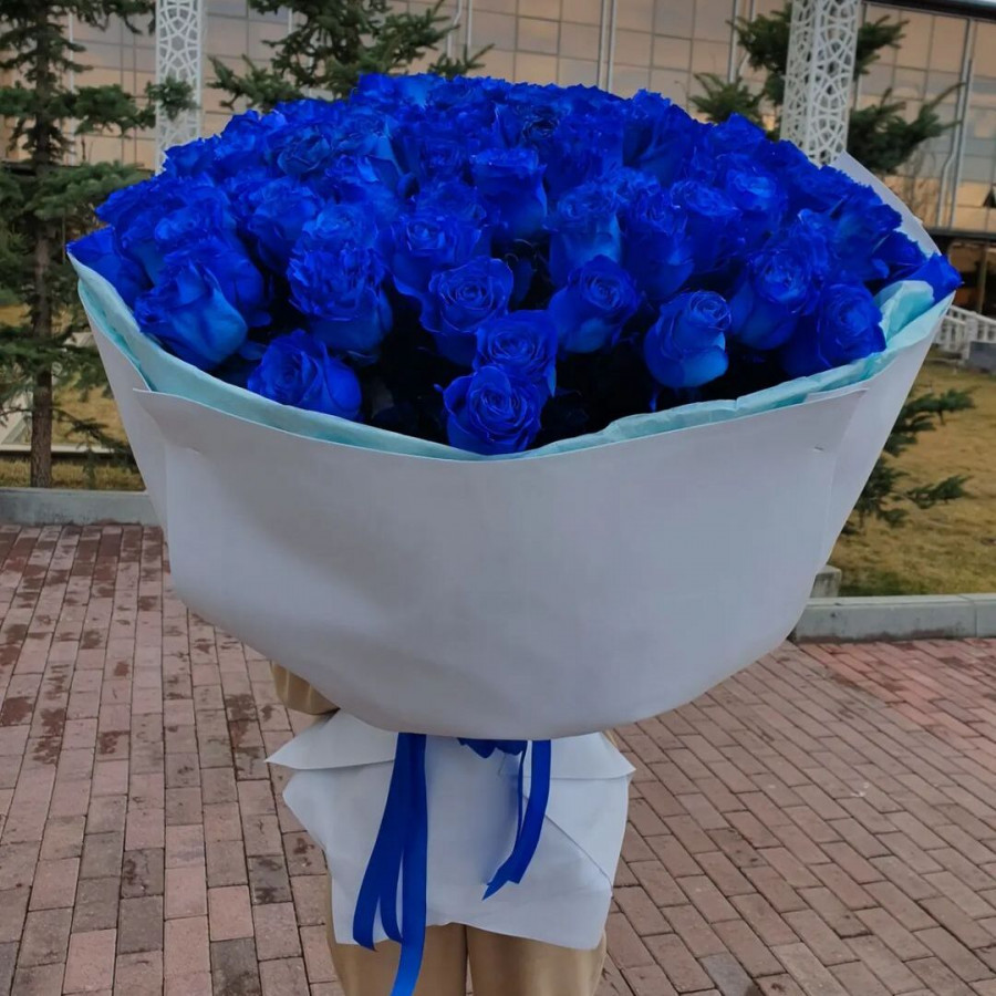 Букет из 101 синей розы - это необычный и запоминающийся подарок. Розы синего цвета символизируют мудрость, спокойствие и гармонию. Такой букет отлично подойдет для подарка на юбилей или день рождения. Он создаст атмосферу роскоши и изысканности и станет настоящим украшением любого интерьера.