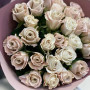 На фото букет из 29 бежевых роз. В составе: роза 29 шт, крафт-бумага 1 шт, атласная лента 1 шт, . Все цветы свежие и ароматные, букет красиво оформлен и отлично подходит для подарка. Доступна доставка цветов или самовывоз.
