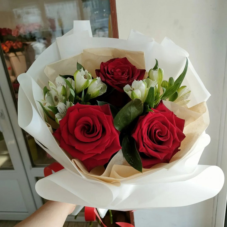Букет из 3 красных роз с альстомерией в Верхней Салде