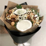 На фото букет из кокосов. В составе: кокос 1 шт, макадамия 10 шт, грецкий орех 15 шт, кешью 10 шт, хлопок 2 шт, шишка 1 шт, писташ 1 шт, крафт-бумага 1 шт, атласная лента 1 шт, . Все цветы свежие и ароматные, букет красиво оформлен и отлично подходит для подарка. Доступна доставка цветов или самовывоз.