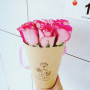Намекнуть избраннице о своих чувствах поможет нежный букет из 9 роз в оригинальной упаковке из картонного конуса с лентами. Нежный букет лучше иных слов расскажет любимой о Ваших чувствах и поможет Вам стать ближе друг к другу.