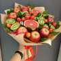На фото фруктовый букет с грейпфрутом. В составе: грейпфрут 1 шт, клубника 14 шт, киви 4 шт, яблоко 8 шт, макаруны 4 шт, эвкалипт 1 шт, крафт-бумага 1 шт, атласная лента 1 шт, . Все цветы свежие и ароматные, букет красиво оформлен и отлично подходит для подарка. Доступна доставка цветов или самовывоз.