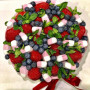 На фото клубника и голубика. В составе: клубника (400 гр.) 1 шт, голубика (200 гр.) 2 шт, маршмэллоу (100 гр.) 1 шт, коробка (s) 1 шт, . Все цветы свежие и ароматные, букет красиво оформлен и отлично подходит для подарка. Доступна доставка цветов или самовывоз.