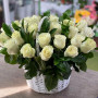 Композиция 31 белой розы в белой корзине в Верхней Салде