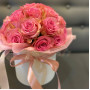 На фото композиция из 15 розовых роз в белой коробке. В составе: роза 15 шт, коробка (s) 1 шт, атласная лента 1 шт, . Все цветы свежие и ароматные, букет красиво оформлен и отлично подходит для подарка. Доступна доставка цветов или самовывоз.