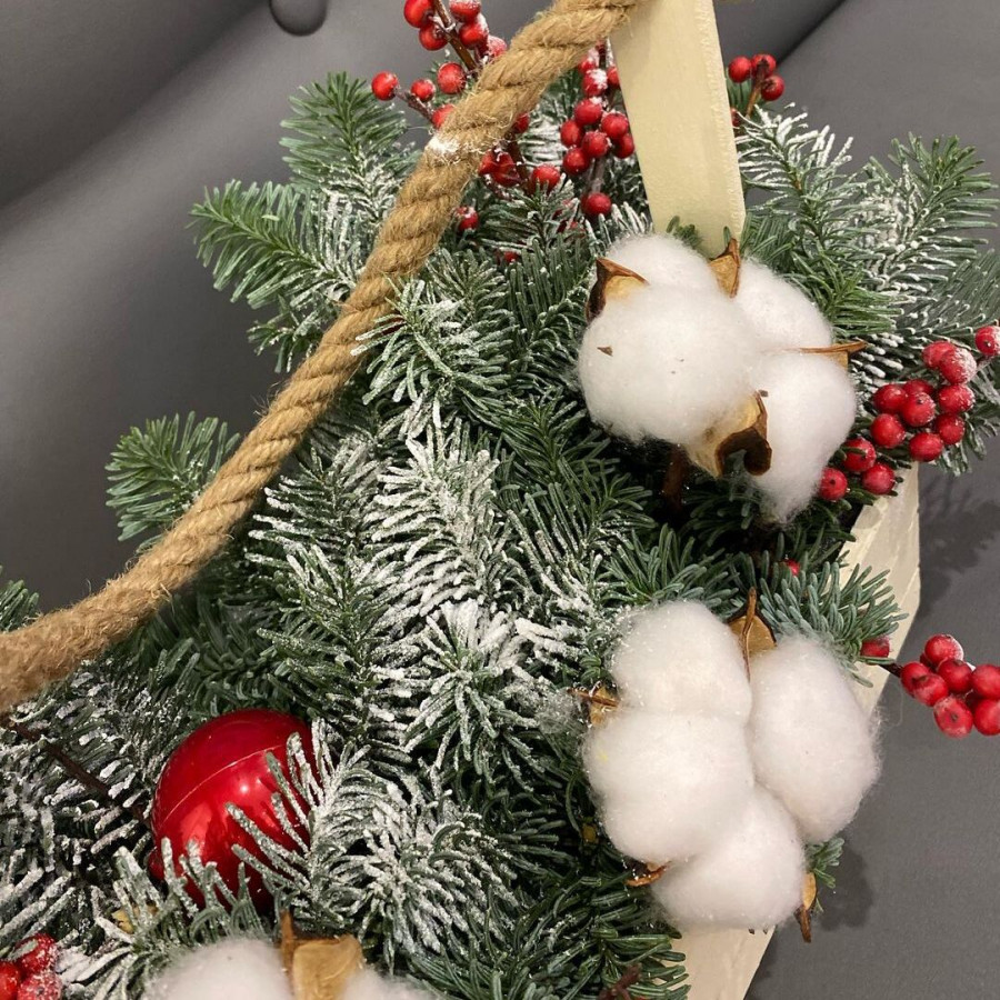 Новогодняя композиция в деревянном ящике в Верхней Салде