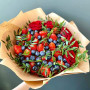 На фото розы и ягоды. В составе: клубника 15 шт, голубика (200 гр.) 1 шт, роза 5 шт, писташ 3 шт, крафт-бумага 1 шт, атласная лента 1 шт, . Все цветы свежие и ароматные, букет красиво оформлен и отлично подходит для подарка. Доступна доставка цветов или самовывоз.